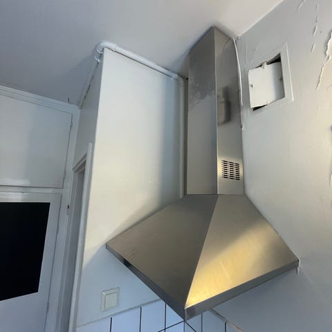 En fin oanvänd fläkt, men hänger i en använd kök. Fin, inga repor. Oklart om den fungerar eller inte