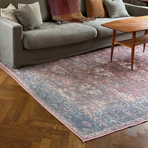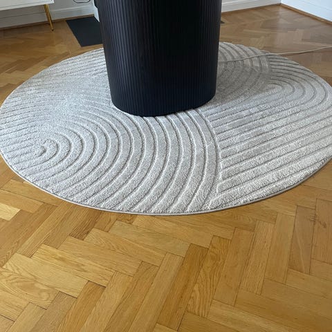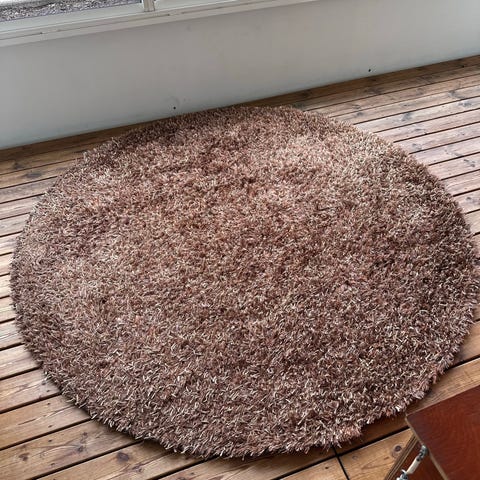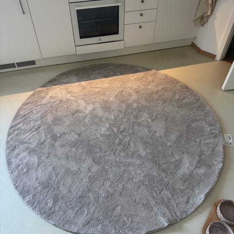 Rugvista rund matta i blå nyanser med orientalinspirerat mönster. Mattan har ett centralt medaljongmönster och dekorativa bårder runt om. Passar exempelvis i vardagsrum, sovrum eller matplats där en rund matta önskas som rumsavdelare eller accentdetalj.