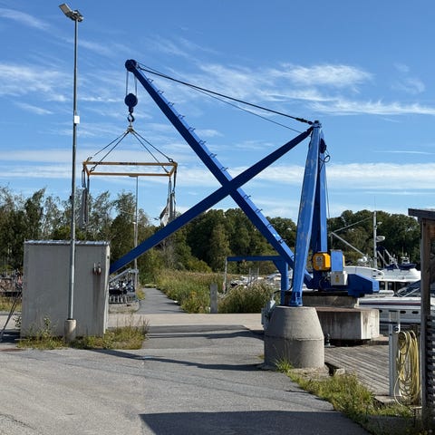 Nu finns möjlighet att förvärva en välutrustad mastkran – idealiskt för båtklubb, marina eller hamnförening som vill stärka sin lyftkapacitet.