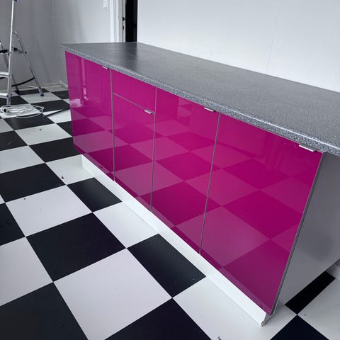 Två överskåp från IKEA. Luckorna är vita blanka