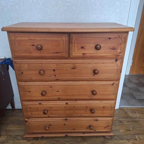 Vit byrå, begagnad. Längd 210 cm, djup 42 cm, höjd 86 cm.