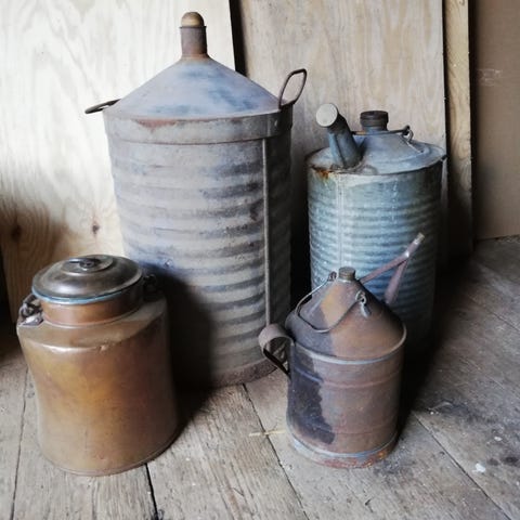 Okänt märke gamla mjölkkrukor metall