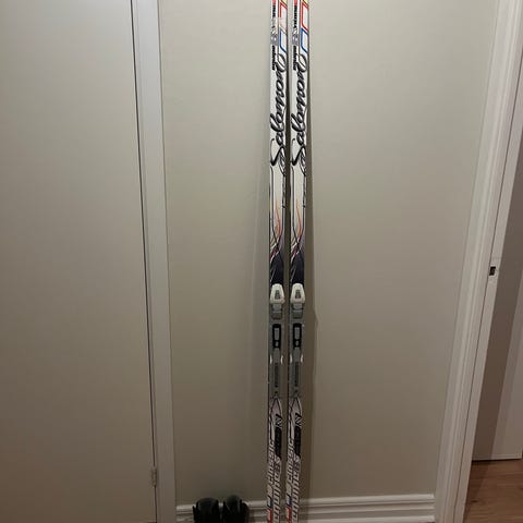 Skidor 188 cm med skor storlek 38. Pris 500 kr.