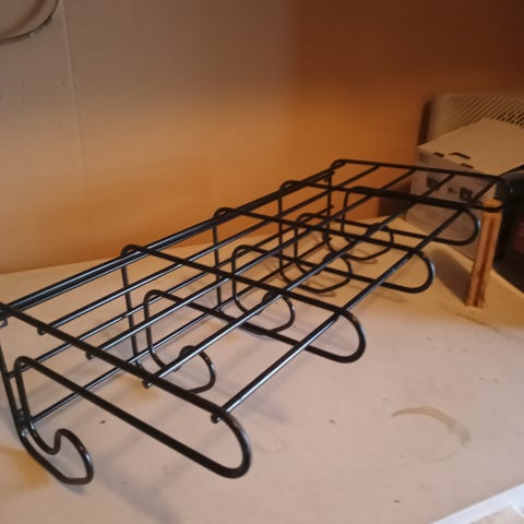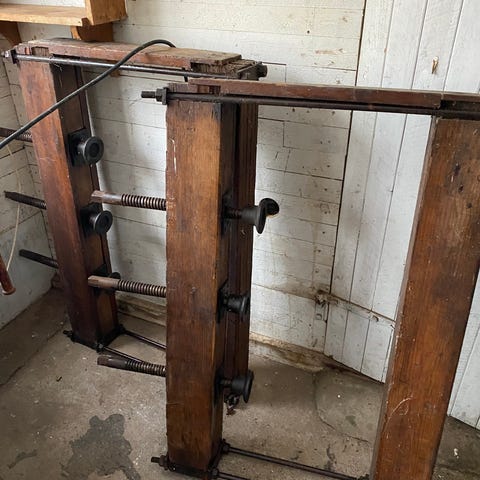 Antik hatthylla från järnvägsstation med gavlar i gjutjärn samt nya rundstavar i björk.Bredd 900 mobil 0707751135