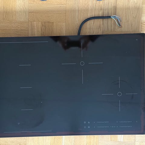 Inbyggnadsugn och induktionshäll i svart glas. Ugn med front i glas, digital display och tryckknappar. Induktionshäll med fyra kokzoner och touchkontroller. Avsedd för inbyggnad i kök. Passar för matlagning och bakning i hemkök där man vill kombinera ugn och häll i ett inbyggnadspaket.