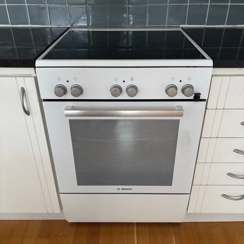Electrolux spis i rostfritt utförande med glaskeramikhäll och ugn. Spisen har flera vred för inställning av värmezoner och ugnsfunktioner.
