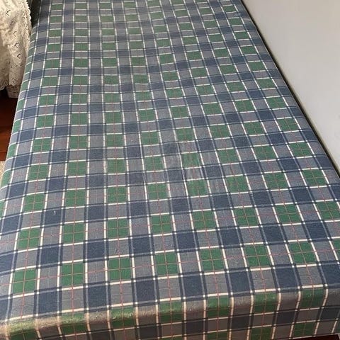 Den har inte blivit använd så länge men barn sover i denna säng med och finns banan fläckar samt tand kräm. Annars är den ny i skicket materialet osv .