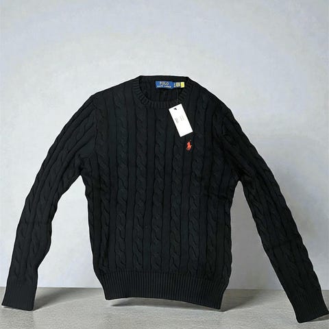 Ganttröja i storlek S. Stickad modell i grå bomull. Snygg grå färg.