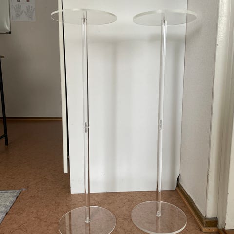 Set med tre piedestaler i vitlackerad metall. Öppna kubformade stativ i tre olika höjder som kan användas till exempelvis växter, dekorationer eller som små sidobord. Enkel, minimalistisk design som passar i de flesta rum och miljöer. NOTERA kommer utan glasskivor därav priset.