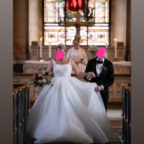 Säljer min fantastiska brudklänning som är skräddad av Matildas Fest. Jag kände mig otrolig fin i den. Tyget faller väldigt snyggt. Klänningen är kemtvättad efter användning. Några små fläckar som inte försvann i kem, men inget som syns alls. Jag är 172 cm lång och hade 5 cm klack. Brukar vara en stabil storlek M, med relativt liten byst.