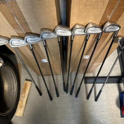 Innehåller järn, wedgar, putters och woods från olika märken, bl.a. Tommy Armour, Black Scot, Top-Flite, Wilson m.fl.