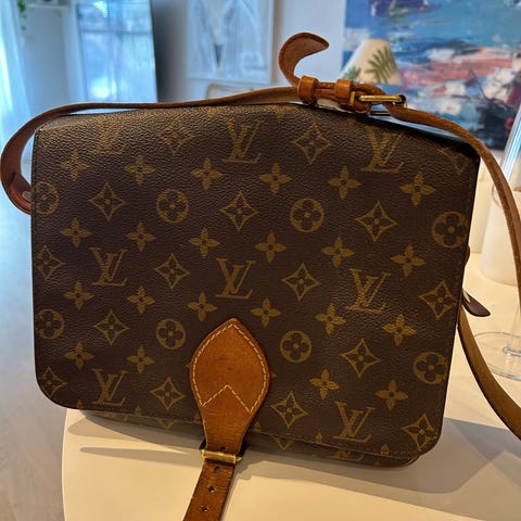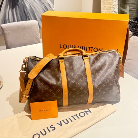 Väl anvand väska för kvinna . Klassisk monogramdesign med dubbla handtag och avtagbar axelrem. Väskan har ett huvudfack med dragkedja samt invändig ficka med dragkedja för mindre tillhörigheter. Passar som handväska eller mindre weekendväska.