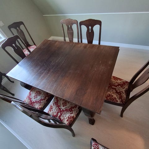 Matbord höjd 75 cm bredd 90 cm längd 180 cm med iläggsskiva 225 cm.