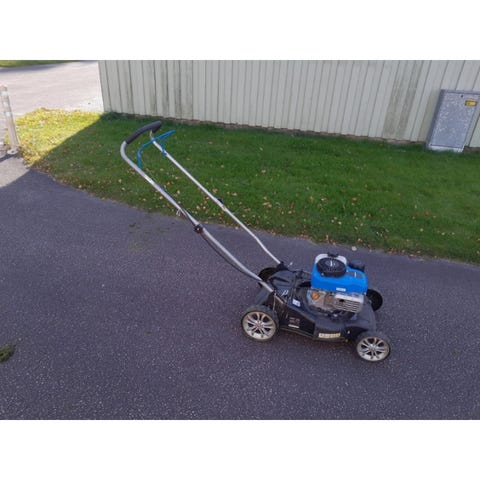 Handdriven cylindergräsklippare i metall. Modellen har ett långt handtag och mekanisk klippenhet med flera knivar. Lämplig för klippning av mindre gräsytor där man vill undvika motoriserade maskiner. Kräver ingen el eller bensin och drivs helt manuellt genom att skjutas framåt över gräsmattan.