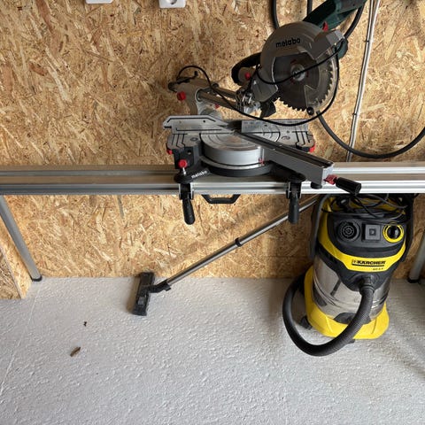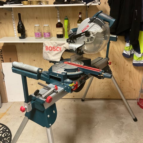 Söljer min Bosh Professional Kap/gersåg GCM 10 S med stativ för bra och ergonomisk arbetshöjd. Fungerar utmärkt men notera att skyddet för klingan har gått sönder och saknas.