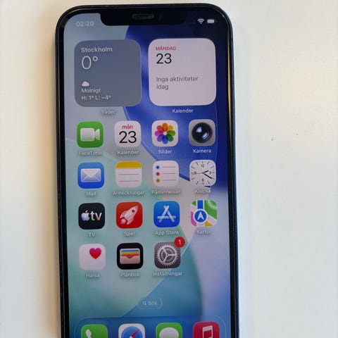 Säljer min iPhone 14 i mörkblå med 256 GB lagring. Skärmen är nyligen utbytt och telefonen fungerar helt felfritt. Face ID fungerar utan problem och den är i gott skick överlag. Batterihälsan är 87 %, och det finns en mindre skråma på ena hörnet, men inget som påverkar funktionen.
