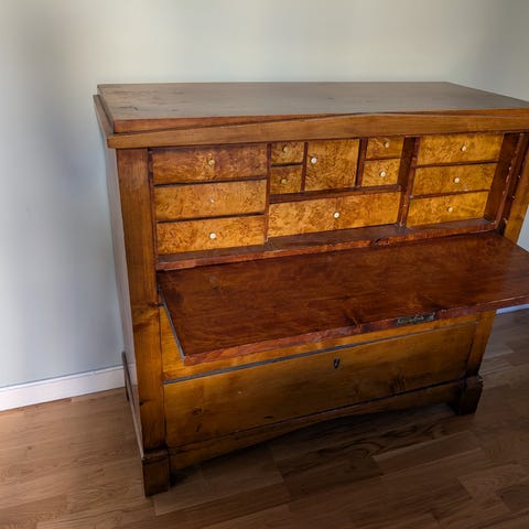 Skänker bort en äldre byrå/sekretär i trä. Perfekt för dig som gillar äldre möbler eller vill ha ett renoveringsprojekt.