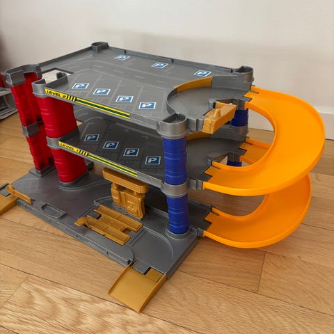 Bilbana från 70-talet. Ena fästet till loopen är skadad, se bild 4. "Skruvstäded" som håller fast startanordningen är skadad, se bild 5.