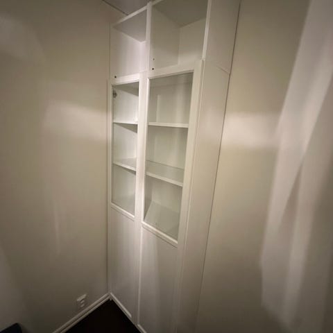 Två stycken Billys som är lite modifierade med strukturfärg och andra handtag/knoppar.