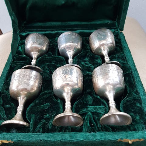 Shotglas i metall med jaktmotiv