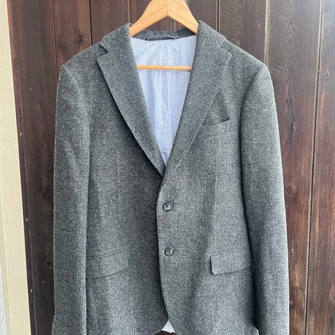 Kavajen är i mycket fint skick, knappt använd och utan fläckar eller skador.