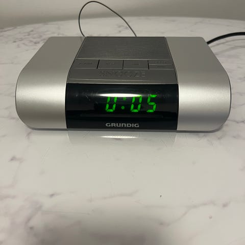 Exxent Alarm Clock Radio FM Stereo Compact Disc Player. Denna enhet kombinerar en väckarklocka, FM-stereoradio och CD-spelare. Den har en digital display för tid och funktioner. Enheten är utrustad med knappar för uppspelning, paus, stopp, hoppa över spår och repetition. Volymkontroll och inställningsratt finns på sidorna. Enheten har även en snooze-funktion och hörlursuttag.