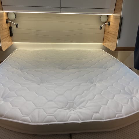 Helt ny bäddmadrass till husbil. 10 cm tjockt kallskum med 38 kg densitet. Överdrag helt nytt. Observera baksidan då det sitter klämmar bak på grund av om man vill ändra storleken för passa stommen på sängen. Ca mått 1.89 lång o ca 1.38 bred. Något mindre bredd i ena änden. Kommer även bilder på en stol till husbil. Pruta inte. Maila här om det är frågor. Skickas inte på grund av storleken.