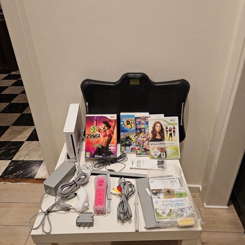 Nintendo Wii Balance Board i vit färg. Tillbehör för Nintendo Wii som används för balans- och rörelsekontroll i kompatibla spel. Drivs med batterier som monteras på undersidan. Passar för användning på plan yta inomhus.
