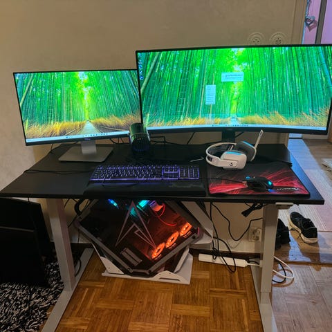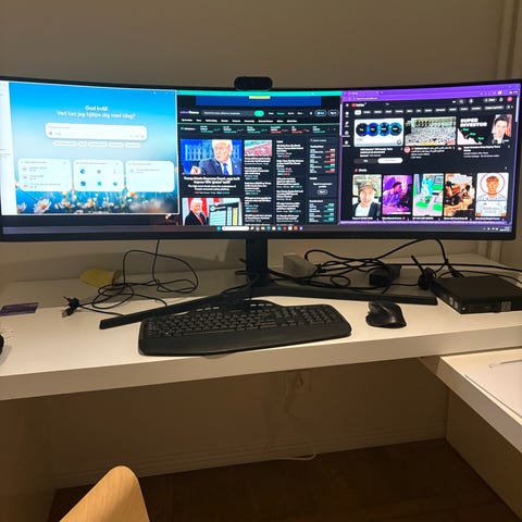 Säljer två Samsung 24” curved skärmar (C24F390FH) tillsammans med dubbel monitorarm för skrivbord.