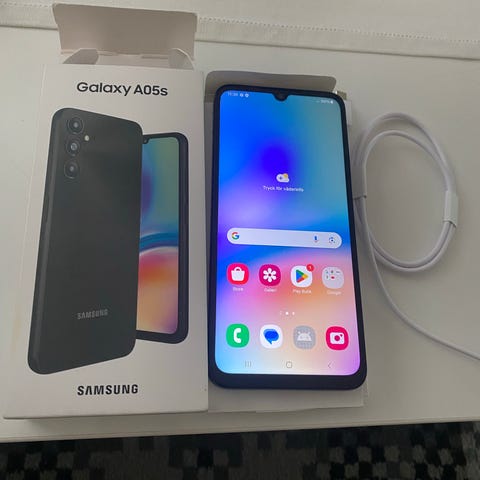 Samsung Galaxy A16 5G mobiltelefon med 128 GB internminne. Färg: svart. Modellen tillhör Galaxy A-serien och har stöd för 5G-anslutning. Lämplig för vardaglig användning som samtal, meddelanden, surf, appar och lagring av bilder, video och musik. Ligger kvar i kartongen, har inte öppnat den, helt ny