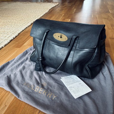 Mulberry Islington bucket bag i nubuck (ser ut som mocka). Färgen heter Ebony och är mörkbrun. Väskan är ett år gammal, inköpt på NK Göteborg och jag har alla kvitton, tags och dustbag. Den är mycket sparsamt använd och säljs för att jag inte kan använda den längre, tyvärr. Nypris var 13 700 och den säljs fortfarande. Jag säljer den för halva priset 6 850.