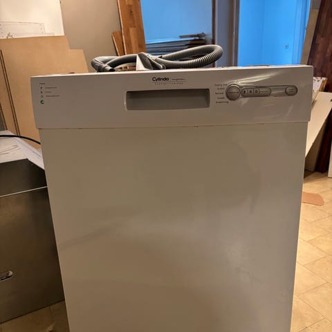 Cylinda diskmaskin i standardstorlek för inbyggnad under bänkskiva. Front i vit färg och invändigt rostfritt med två korgnivåer samt bestickkorg i underkorgen. Panel med knappar och display sitter upptill på luckans insida. Passar för normalstor hushållsdisk och daglig användning i kök.