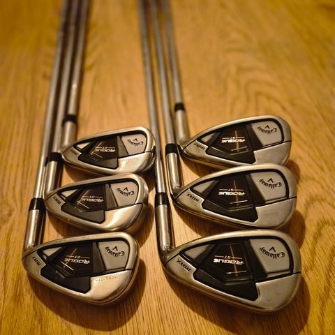5, 6, 8, 9 plus P och några udda klubbor. Spelat endast 5 ggr med dem. Nypris över 10000, nu superrea.