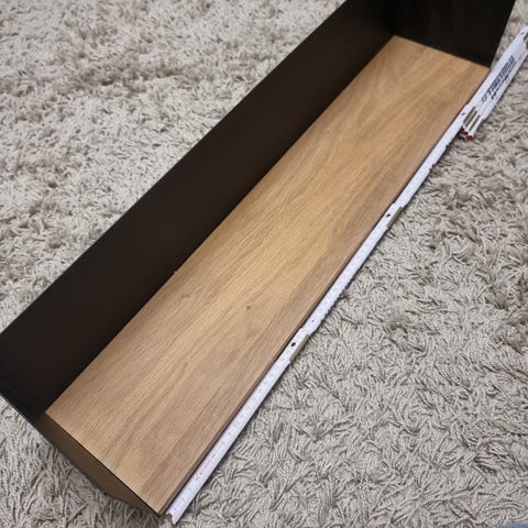 IKEA vägghylla trä brun med svart metallkonsol