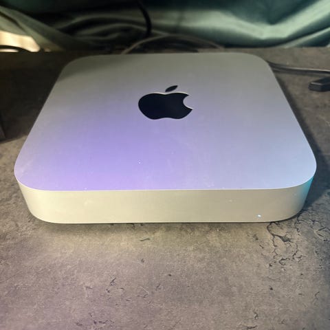 Mac mini med följande portar: Ström, Gigabit Ethernet, FireWire 800, HDMI, Thunderbolt, USB 2.0, SD-kortplats, Ljud in/ut.