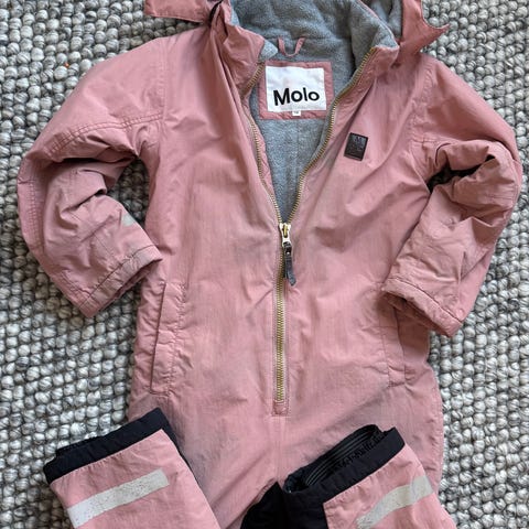 Fin och funktionell vinteroverall från Kaxs Proxtec i storlek 116. Rosa/svart med reflexer och luva med fuskpäls.