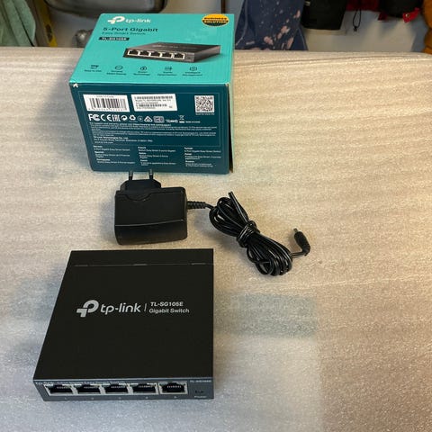 OBs denna switch är version 4 (unmanaged) TP-Link TL-SG105E nätverksswitch med 5 gigabit Ethernet-portar i svart utförande. Lämplig för att utöka trådbundet nätverk i hem eller mindre kontor. Metallchassi och kompakt storlek som kan placeras på skrivbord eller hylla. Levereras med nätadapter enligt bild.