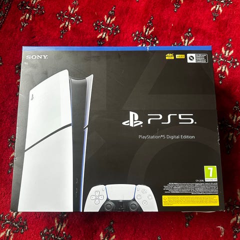 Sony Playstation 5 spelkonsol i vit färg. Konsolen på bilderna visas tillsammans med en trådlös handkontroll av modellen DualSense i matchande vit och svart färg. Playstation 5 är en stationär spelkonsol avsedd för spel, film och annan underhållning. Allt ingår som man får med när jag köpte ps5 för cirka ett halv år sen