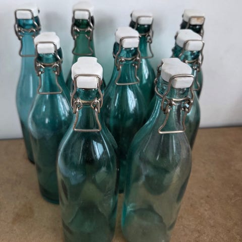 Passar exempelvis som dekoration, samlarföremål eller för förvaring av dryck. En av flaskorna har kvar en äldre etikett på framsidan.