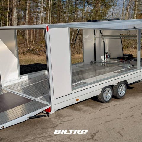 TrackDay med kåpa är alltid rejält standardutrustad. Hel Bakgavel med lyfthjälp, Hydraulisk Tipp. 10” aluminiumfälgar med sommardäck, 1600 mm hög kåpa med invändiga lastbågar, lastlåsskenor längs hela sidorna, LED-belysning på vagnen.