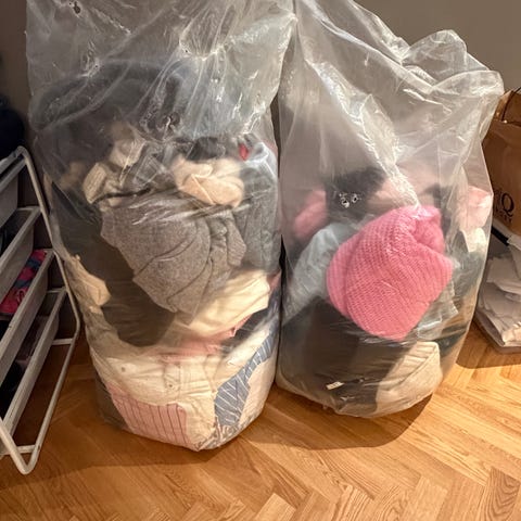 50 stora säckar med blandade begagnade kläder (dam-, herr- och barnkläder, sommar- och vinterkläder).