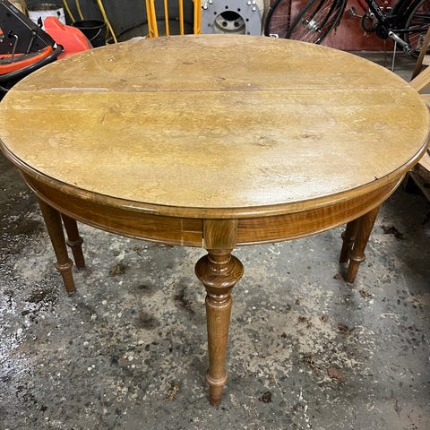 Antikt runt träbord delbart