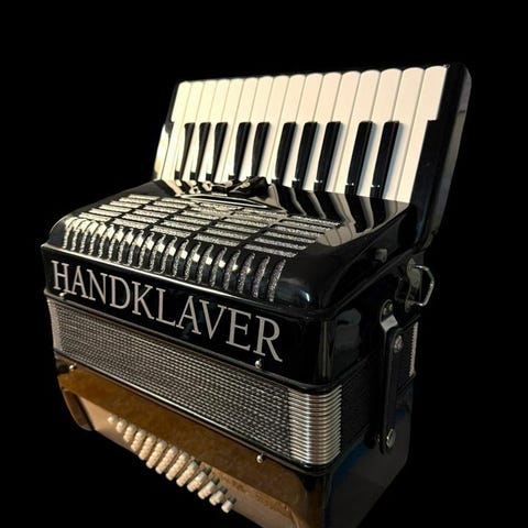 Falconetti Super Cromatic 3 körigt pianodragspel med 16+8+8 fot stämmor. Svagt svängande violinton.