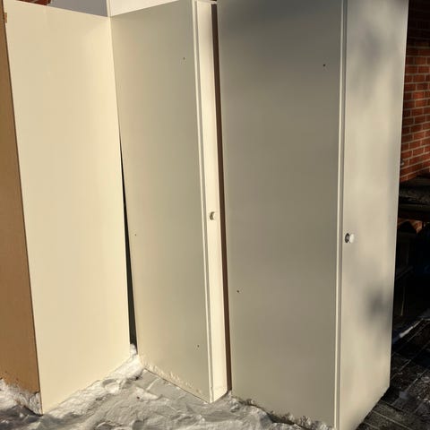 1) ikea malm dresser. Got it used with the stickers. The halloween stickers can be removed. The side has some sexual themed stickers. The finish is peeling on the side with the stickers. Bottom drawer has a crack.