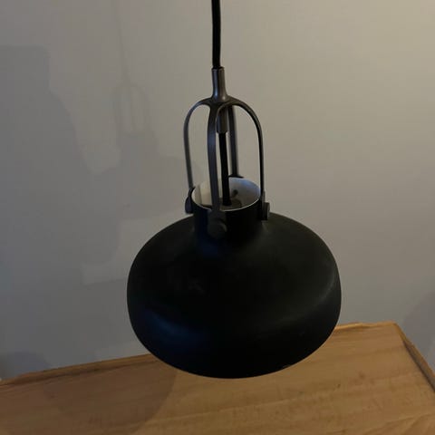 Svart taklampa Ranarp från ikea med glödlampa. Fungerar säljer pga flytt. 150kr eller högst bjudande
