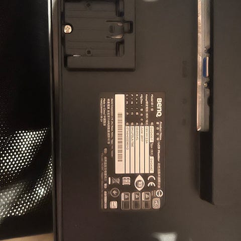 BenQ XL2411Z är en LCD-monitor med modell-ID XL2411-B. Etiketten visar att den är tillverkad i oktober 2015 och att den drivs med 100–240 V, 50/60 Hz, 1,5 A. På ramen finns märkning för NVIDIA 3D Vision.