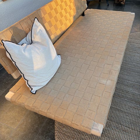Fullt fungerande - men har bruksslitage; sittmadrassens överdrag har flottfläckar på ovansidan - har tvättats 3 gånger med Vanish så fläckarna syns knappt längre. Kommer från hushåll som har katt. Är nedmonterad.