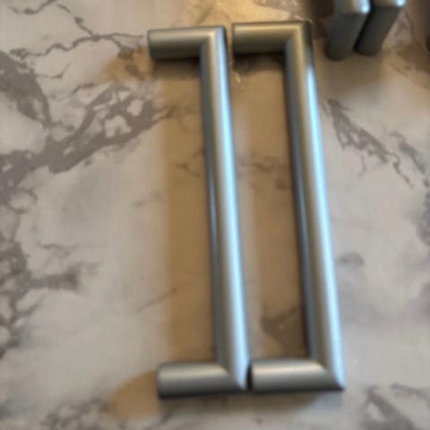 Handtag till köksluckor i metall. Modellen är bågformad och levereras med skruvar enligt bild. Passar för montering på köksluckor, lådor eller andra skåp där ett greppvänligt metallhandtag önskas.