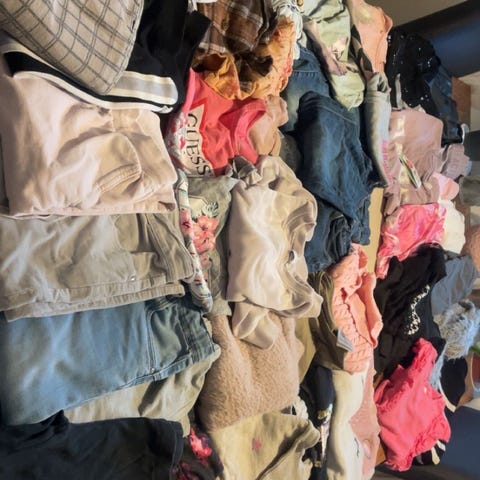 Regnkläder för barn i set, unisexmodell i storlek 128-134. Flerfärgad uppsättning med olika delar, bland annat jackor och byxor med reflexdetaljer. Plaggen är avsedda som ytterkläder vid regn och blött väder och passar för både vardagsbruk och utomhuslek.