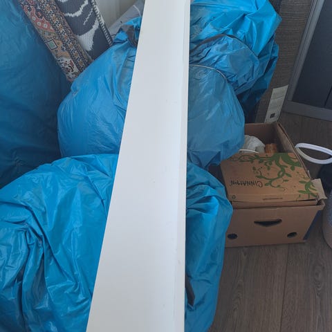 Ikea Ribba hylla i vit färg. Väggmonterad list som kan användas för att ställa upp tavlor, böcker eller mindre föremål. Passar i de flesta rum som exempelvis vardagsrum, sovrum eller hall för enkel exponering och förvaring av saker på vägg.